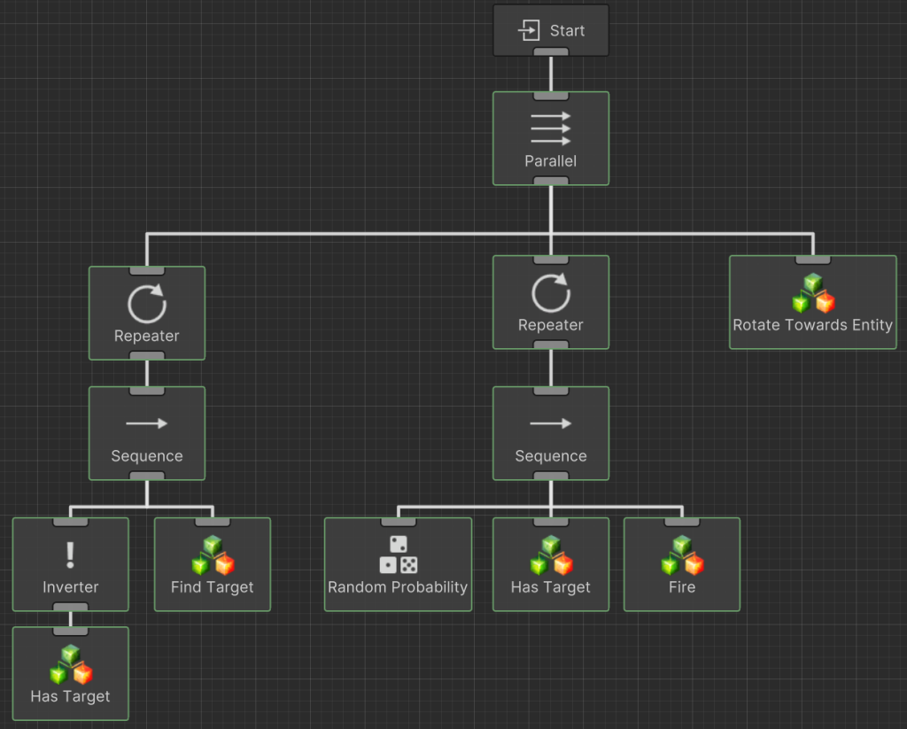 By separating these concerns, systems become easier to design, reason about, and extend. Behavior Designer focuses specifically on decision-making logic, providing a visual environment for building scalable and maintainable behavior trees. It is optimized for authoring complex decision systems while keeping logic readable and easy to debug.