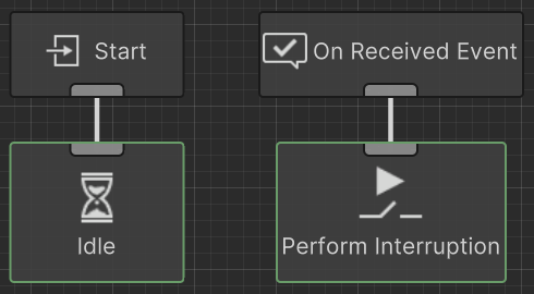 While performing the interruption with the Parallel setup is the most common use case for the Perform Interruption task, you can also use it to interrupt starting from a separate event branch: