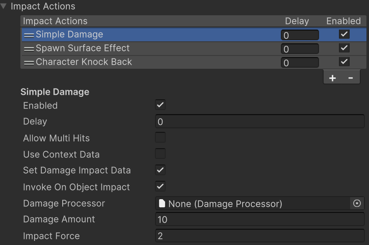 The Damage Processor can also be set on the items individually. The Damage Processor field can be found under the Impact section of the Simple Damage module.